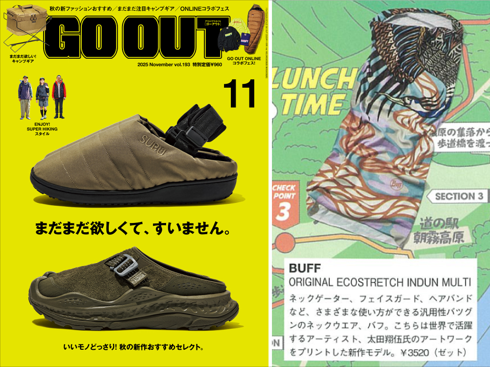 アウトドアファッション雑誌「GO OUT vol.193」(2025年9月30日発売)内の「SUPER HIKING JAPAN」企画に、BUFFの25AW新作「587343 ORIGINAL ECOSTRETCH INDUN MULTI」が掲載されましたのでお知らせいたします。